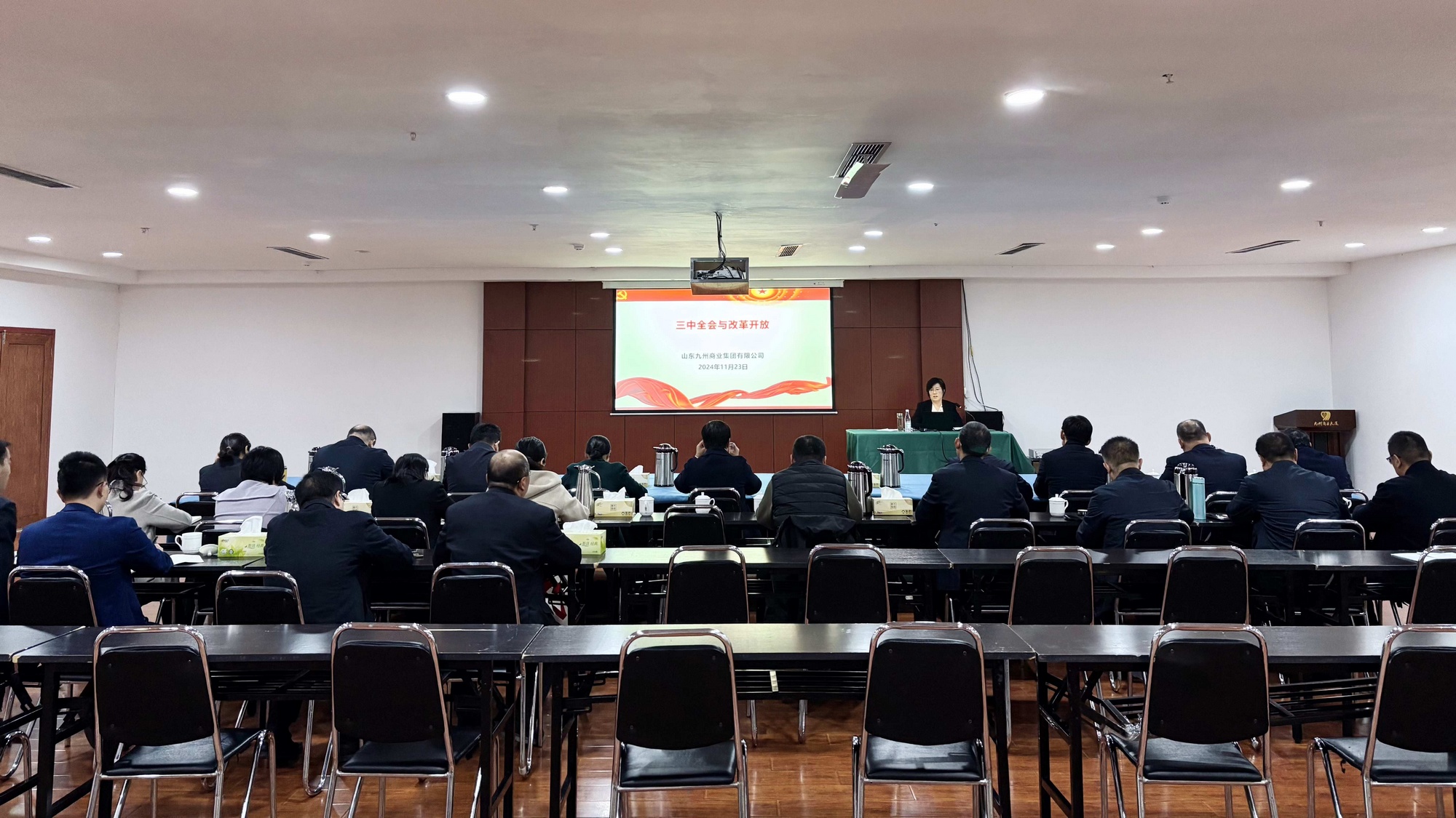 本次黨課由集團黨委書(shū)記、董事長(cháng)王楠楠授課。黨課系統回顧了歷屆三中全會(huì )的時(shí)間節點(diǎn)及其重要歷史成果,分析了改革開(kāi)放對中國經(jīng)濟發(fā)展的深遠影響;介紹了二十屆三中全會(huì )召開(kāi)的發(fā)展背景,對二十屆三中全會(huì )決議稿的起草與大會(huì )主題、重點(diǎn)改革事項及中國式現代化前景展望進(jìn)行了詳細的解讀分析。