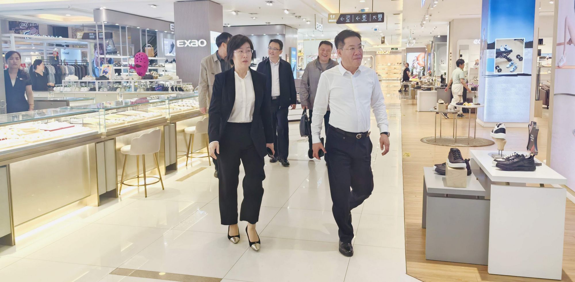 4月26日下午,臨沂市商務(wù)局黨組書(shū)記、局長(cháng)程凱,黨組成員、副局長(cháng)薛詠,商務(wù)發(fā)展服務(wù)中心副主任張劍等人一行到集團調研“五一”節前安全生產(chǎn)及助力外貿轉內銷(xiāo)工作。集團董事長(cháng)、黨委書(shū)記王楠楠,集團黨委副書(shū)記徐凱,九州商業(yè)大廈副總經(jīng)理、黨總支書(shū)記程永濤等陪同調研。