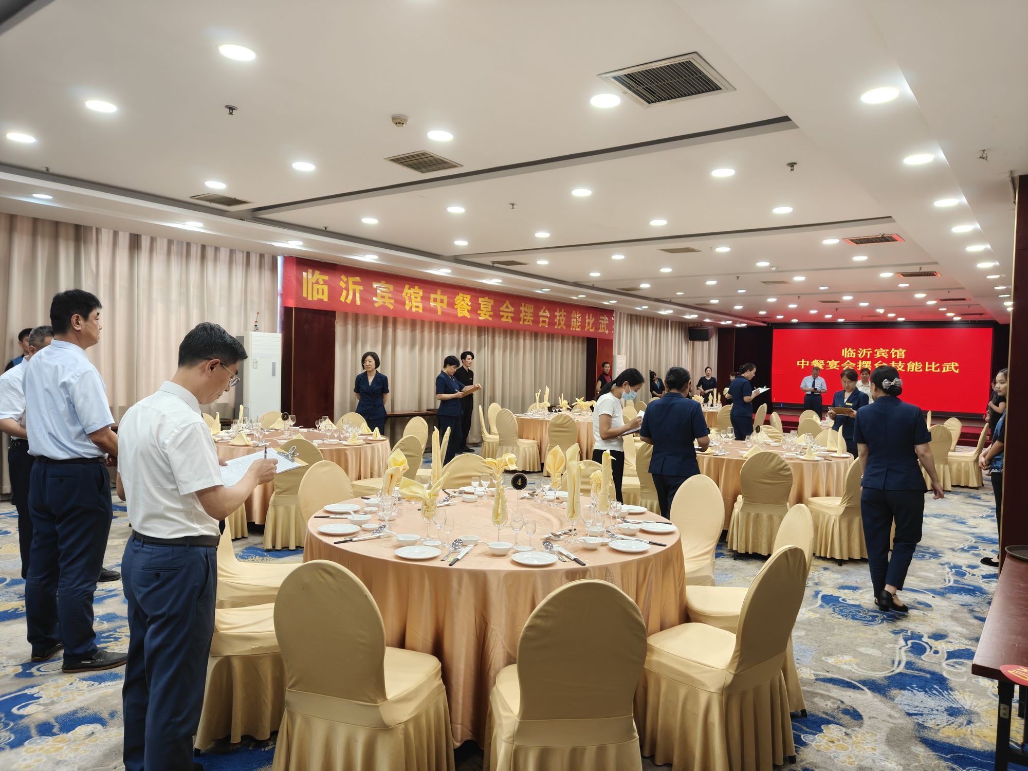 6月24日下午,臨沂賓館2025年餐廳技能比武在沂蒙路店貴賓樓蒙山廳舉行。經(jīng)過(guò)選拔,共有18名選手參加。