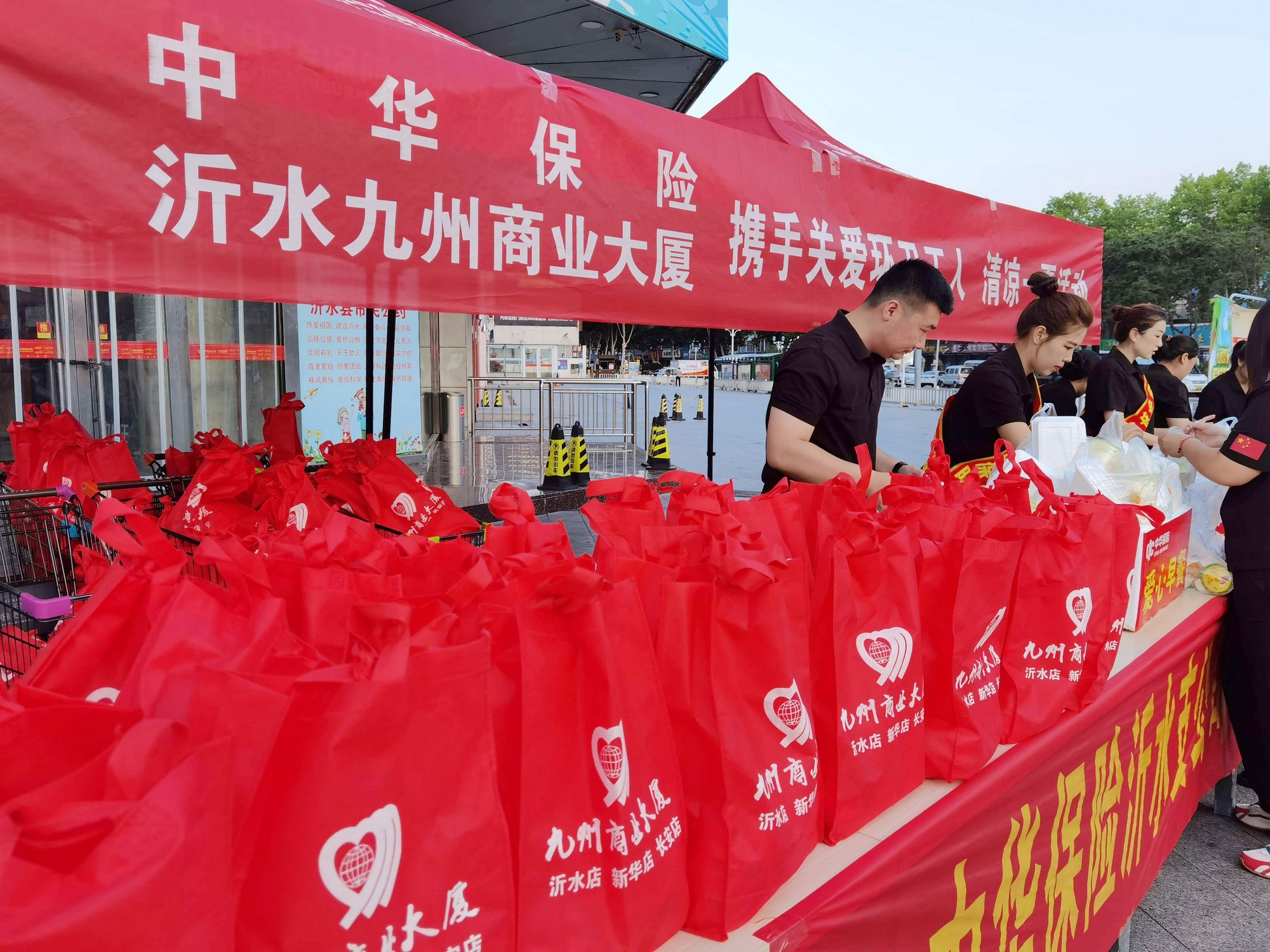 7月15日早上,九州商業(yè)大廈沂水門(mén)店攜手中華保險公司,在長(cháng)安店門(mén)前廣場(chǎng)聯(lián)合開(kāi)展了“攜手關(guān)愛(ài)環(huán)衛工人 清涼一夏”公益活動(dòng),為150余名一線(xiàn)環(huán)衛工人發(fā)放早餐與清涼禮包,在炎炎夏日為城市的“美容師”送去清涼與關(guān)懷。