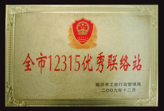 2009年12月九州商業(yè)大廈12315聯(lián)絡(luò )站被臨沂市工商局評為“全市12315優(yōu)秀聯(lián)絡(luò )站”。 九州商業(yè)大廈12315聯(lián)絡(luò )站自2008年2月建立以來(lái),在各級領(lǐng)導和上級職能部門(mén)的指導幫助下,一直把凈化消費市場(chǎng)、維護消費者合法權益當作自己的責任和義務(wù),杜絕假冒、誠實(shí)守信、依法經(jīng)營(yíng),把商品質(zhì)量與企業(yè)信譽(yù)和發(fā)展緊密相連,與臨沂市工商局密切配合,全心全意為消費者營(yíng)造一個(gè)放心消費的購物場(chǎng)所。山東省工商總局局長(cháng)李華理、消保處領(lǐng)導及萊蕪、淄博、棗莊、寶雞等工商系統曾多次前來(lái)九州大廈12315聯(lián)絡(luò )站進(jìn)行參觀(guān)、學(xué)習、指導。
