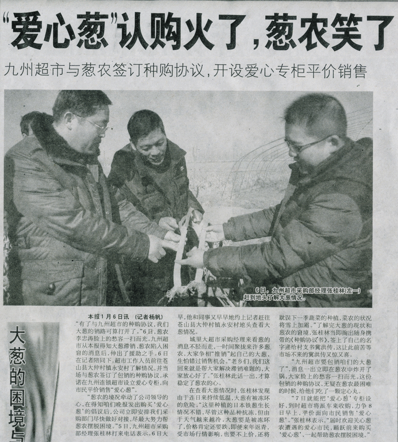 購協(xié)議》,并在所屬超市門(mén)店設立“愛(ài)心蔥”專(zhuān)柜。2011年1月7日的《沂蒙晚報》刊發(fā)了專(zhuān)稿予以報道。以