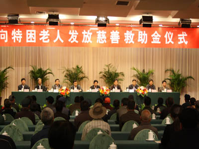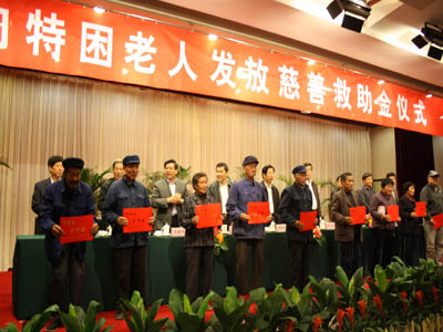 在我省第23個(gè)老人節和“九九”重陽(yáng)節之際,集團與市老齡委、市慈善總會(huì )、臨沂日報報業(yè)集團等單位聯(lián)合舉行了“向特困老人發(fā)放慈善救助金”活動(dòng);顒(dòng)上為100名孤寡特困老人和100名百歲老人每人發(fā)放了1000元的救助慰問(wèn)金。 作為老齡人口大市,我市重視發(fā)展老齡事業(yè),通過(guò)加強領(lǐng)導,完善社會(huì )保障體系等措施,在全社會(huì )營(yíng)造了濃濃的敬老愛(ài)老助老氛圍。眾多愛(ài)心企業(yè)積極參與,推動(dòng)了我市老齡事業(yè)的發(fā)展。作為“臨沂市十大愛(ài)心企業(yè)”,集團積極參與、支持全市老齡事業(yè)的發(fā)展,用實(shí)際行動(dòng)扶老、助老,向老年人奉獻愛(ài)心。 多年來(lái),集團在事業(yè)發(fā)展的同時(shí),始終牢記報效國家、回饋社會(huì )、投身公益的責任,積極投身慈善事業(yè)。通過(guò)開(kāi)展慈善救助、“慈心一日捐”、“送溫暖”等一系列活動(dòng),積極參與到各類(lèi)助學(xué)、助殘、賑災、濟困等公益事業(yè)中來(lái)。幾年來(lái),集團在各項公益活動(dòng)累計捐款捐物達數百萬(wàn)元,為推動(dòng)全市慈善事業(yè)的發(fā)展做出了重要貢獻。 “老吾老以及人之老”,關(guān)愛(ài)老人是我們中華民族的傳統美德,也是我們全社會(huì )的共同責任。集團此次向特困老人發(fā)放慈善救助金活動(dòng)是集團用實(shí)際行動(dòng)關(guān)愛(ài)老人的具體體現,有利于喚起全社會(huì )對尊老敬老的重視,有利于在全社會(huì )樹(shù)立尊老、敬老、愛(ài)老、助老的良好風(fēng)氣。 市委常委、市總工會(huì )主席林祥余,市人大顧問(wèn)、市慈善總會(huì )名譽(yù)會(huì )長(cháng)李寶智,市政府副秘書(shū)長(cháng)沈孝生,市民政局局長(cháng)姜新利,市老齡辦主任聶成新,市慈善總會(huì )副會(huì )長(cháng)楊本渠,集團董事長(cháng)楊沂城,黨委書(shū)記王佐文出席儀式并在主席臺就坐。