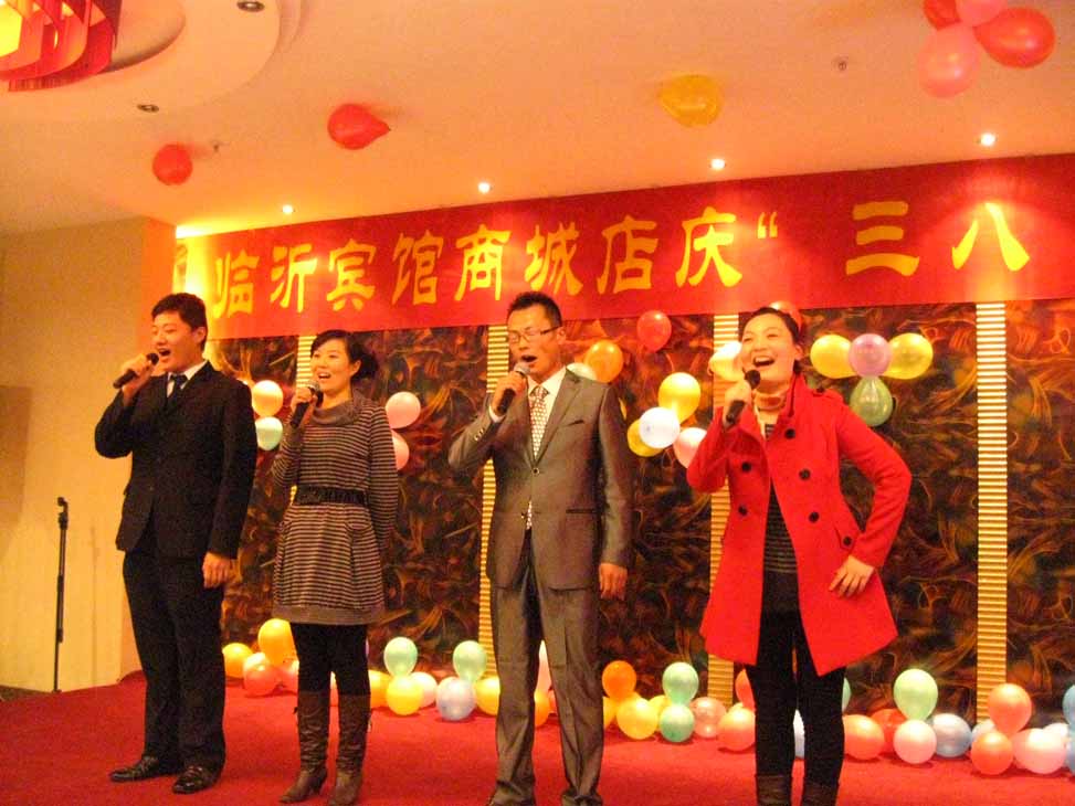 為活躍氣氛,豐富員工業(yè)余文化生活,在一年一度的三八婦女節來(lái)臨之際,商城店組織開(kāi)展了以“美麗節日 快樂(lè )共享”為主題的臨沂賓館商城店慶“三八”聯(lián)誼會(huì )。晚會(huì )上獨唱、對唱、串燒、街舞、互動(dòng)游戲等節目個(gè)個(gè)精彩;餐廳、廚房、客房、后勤員工分區打擂,互相喝彩、熱鬧非凡;小姑娘、小伙子、老大姐等同樂(lè )共享人人參與。用最真誠的聲音,最精彩的節目,最熱烈的掌聲感謝母親、感恩九州,祝福明天。 歡樂(lè )和諧的晚會(huì )已落下了帷幕,而豐富多彩的商城店業(yè)余文化活動(dòng)正在拉開(kāi)序幕……