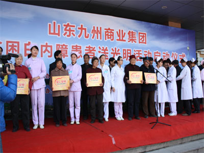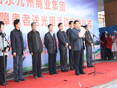 3月29日,山東九州商業(yè)集團為貧困白內障患者送光明活動(dòng)在市人民醫院眼科門(mén)診樓前舉行啟動(dòng)儀式。該活動(dòng)由集團出資60萬(wàn)為我市600名貧困白內障患者提供免費手術(shù)。臨沂市慈善總會(huì )副會(huì )長(cháng)楊本渠、集團董事長(cháng)楊沂城及市有關(guān)單位領(lǐng)導出席啟動(dòng)儀式。 據了解,本次活動(dòng)由市總工會(huì )、市慈善總會(huì )、共青團臨沂市委、市婦聯(lián)、市民政局、市衛生局和山東沂蒙晚報傳媒有限公司主辦,山東九州商業(yè)集團、臨沂市人民醫院承辦。計劃投入資金60萬(wàn)元,為全市600名貧困白內障患者提供免費手術(shù)。定點(diǎn)醫院設在臨沂市人民醫院。凡申請接受免費白內障手術(shù)的貧困患者,可到所在地民政部門(mén)領(lǐng)取《山東九州商業(yè)集團貧困白內障患者報名表》,并在表上加蓋村(居委)、鄉鎮(辦事處)公章后,交縣(區)民政局報市民政局慈善辦,統一安排手術(shù)。 [題圖:集團董事長(cháng)楊沂城在啟動(dòng)儀式上講話(huà)]