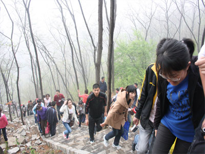 雨后的熊耳山,山陡路滑,團員青年們向山頂前進(jìn)