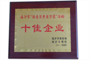 4月29日,市商務(wù)局、市日報社在臨沂賓館召開(kāi)大會(huì ),表彰命名市“滿(mǎn)意消費惠萬(wàn)家”活動(dòng)十佳企業(yè)、先進(jìn)企業(yè)。我集團榮獲臨沂市“滿(mǎn)意消費惠萬(wàn)家”活動(dòng)十佳企業(yè)稱(chēng)號。