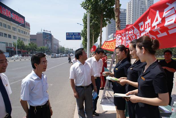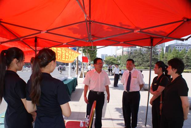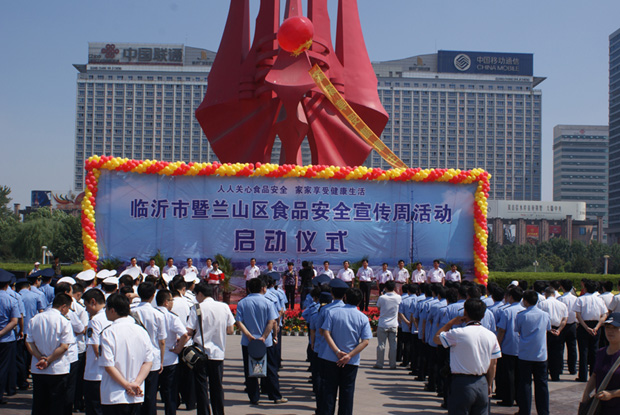 2011年6月13日,在《中華人民共和國食品安全法》頒布實(shí)施二周年之際,臨沂市食品安全協(xié)調委員會(huì )和蘭山區人民政府在人民廣場(chǎng)聯(lián)合舉辦“人人關(guān)心食品安全,家家享受健康生活”為主題的“臨沂市暨蘭山區食品安全宣傳周活動(dòng)啟動(dòng)儀式”。市人民政府副市長(cháng)王曉?和市直、區直相關(guān)職能管理部門(mén)領(lǐng)導參加了啟動(dòng)儀式。 臨沂賓館十分重視此次活動(dòng),支部季書(shū)記親自帶隊,在廣場(chǎng)東側設立“臨沂賓館食品安全宣傳站”,向市民分發(fā)食品安全的宣傳資料和介紹臨沂賓館有機食品的相關(guān)知識,受到與會(huì )領(lǐng)導的表?yè)P和廣大市民的歡迎。