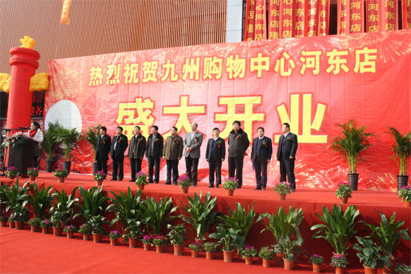 | 2011年12月23日,九州購物中心河東店舉行開(kāi)業(yè)慶典,河東區委書(shū)記王曉軍、區人大、區政府、區政協(xié)等領(lǐng)導與集團領(lǐng)導共同為九州購物中心河東店開(kāi)業(yè)剪彩。九州購物中心河東店位于河東區黃金地段,經(jīng)營(yíng)面積近4萬(wàn)平方米,定位于以中高檔百貨商場(chǎng)與超市業(yè)態(tài)相結合的綜合性購物中心。 開(kāi)業(yè)慶典現場(chǎng)